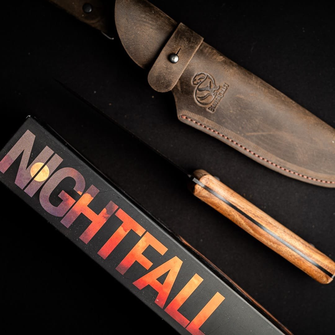 BSH3 Nightfall – Carbon Steel Fixed- Blade Bushcraft Knife Walnut Handle with Leather Sheath