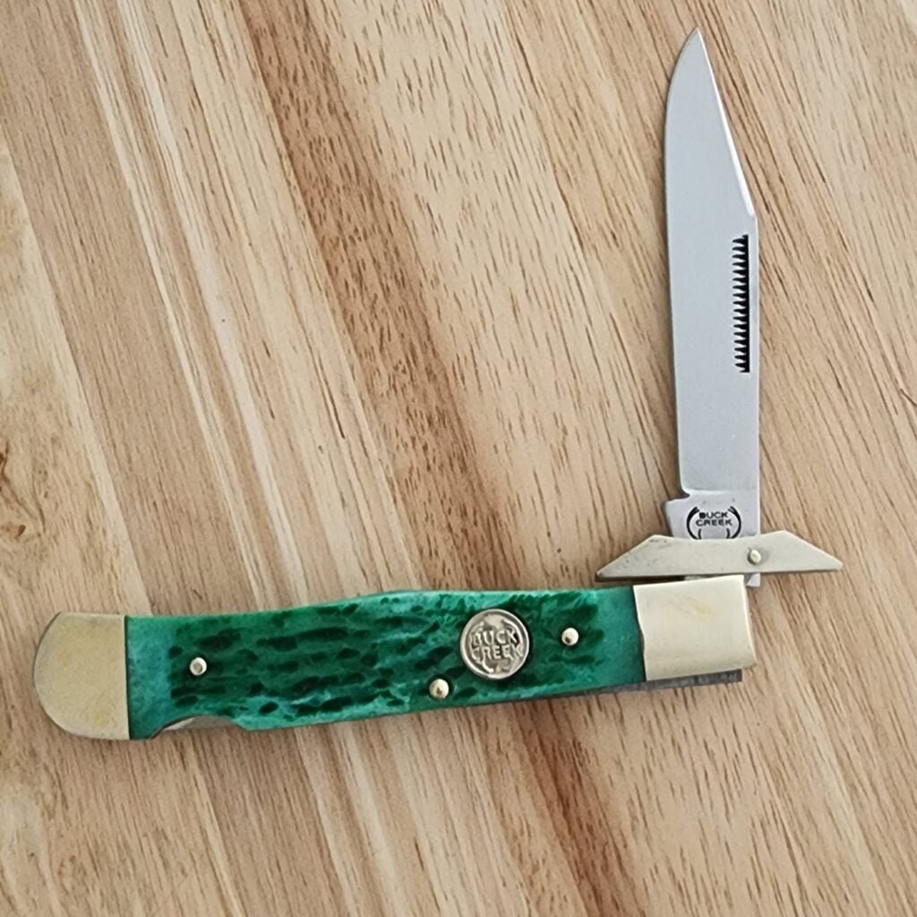 Buck Creek by Frost Cutlery Green Jigged Bone Swing Guard