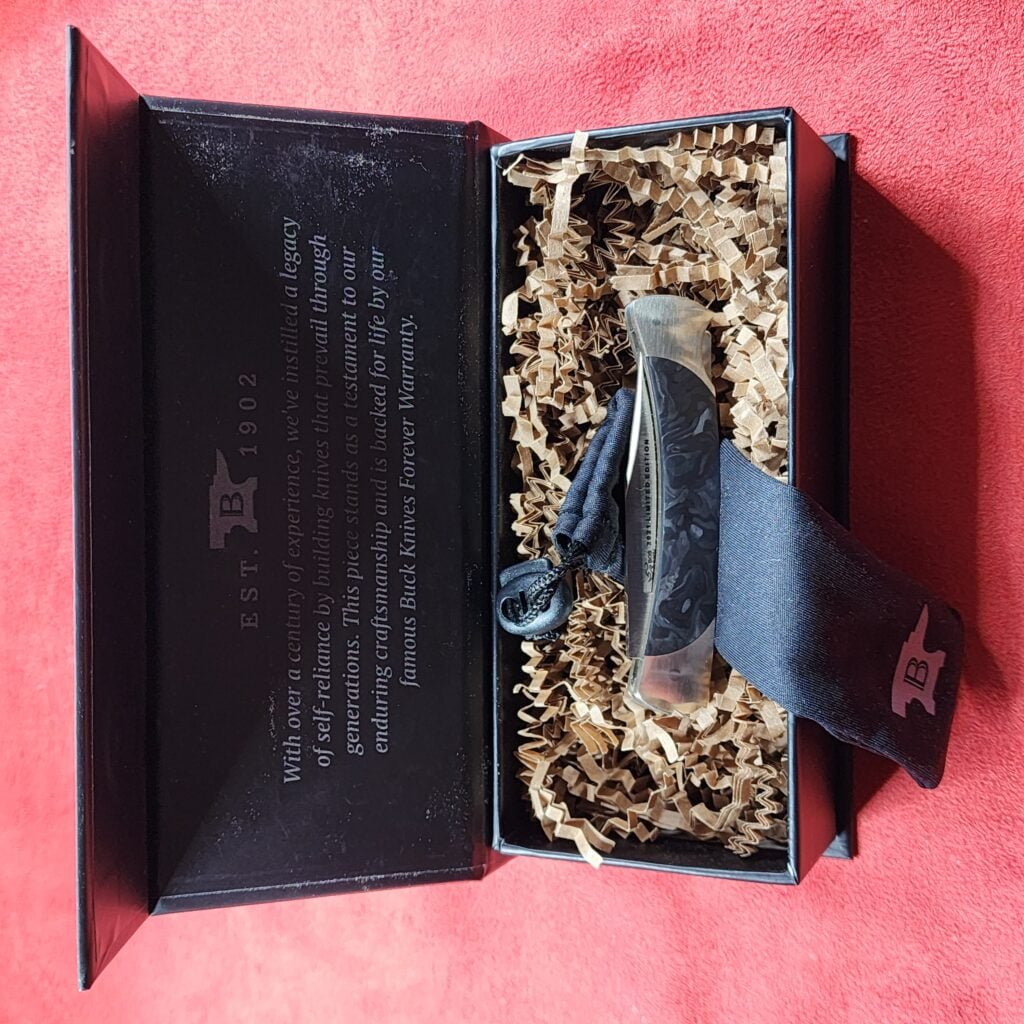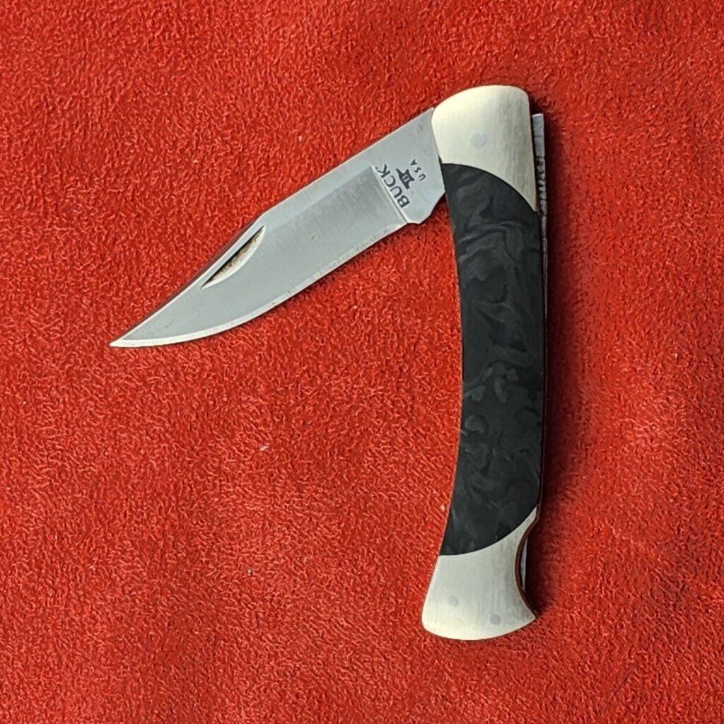 Buck 55 Legacy Limited Edition Carbon Fiber S30V Mini 110 Pocket Knife USA 55CFSLE .Buck Knives "The 55" Mini Version of the Classic 110 Folding Hunter Lockback Pocket Knife. Satin Finish S30V Stainless Steel Clip Point Blade with Nail Notch. Marbled Carbon Fiber Inlays with Satin Finish Nickel Silver Bolsters. Overall Length: 5 3/4" Blade Length: 2 3/8" Closed Length: 3 3/8" Previously owned by a collector, never used, carried or sharpened. Knife pictured is the actual knife you will receive.