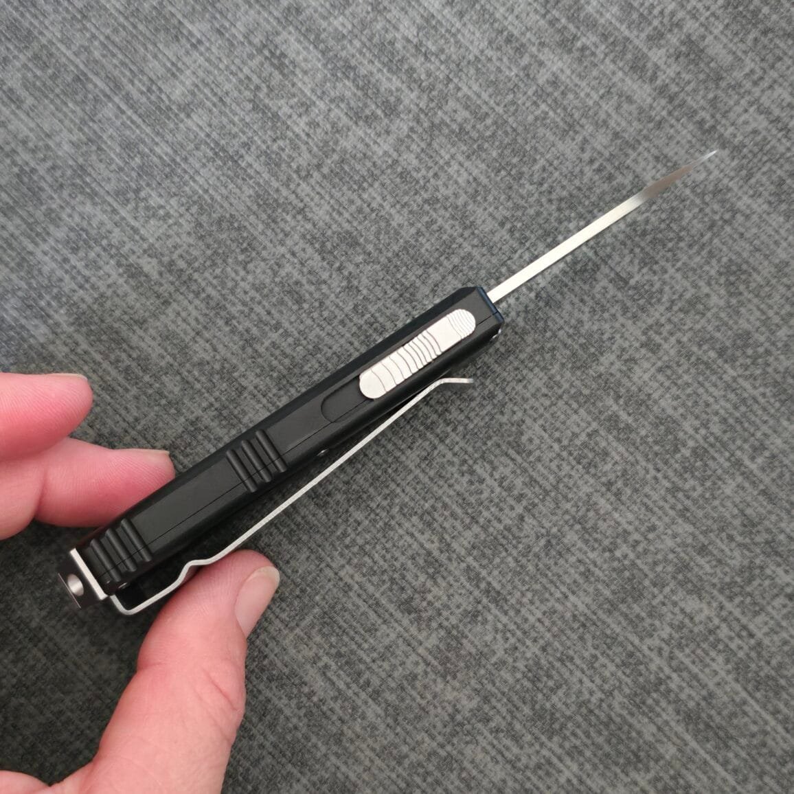 This OTF money clip is a one-of-a-kind design. Constructed with 6061 T6 aviation aluminum handle, aluminum pommel with lanyard hole and comes standard with a high quality D2 steel blade. The clip can be used to clip in your pocket or used as a money clip.