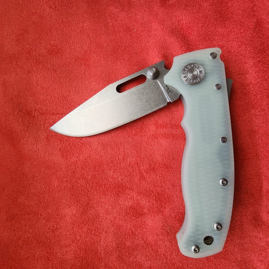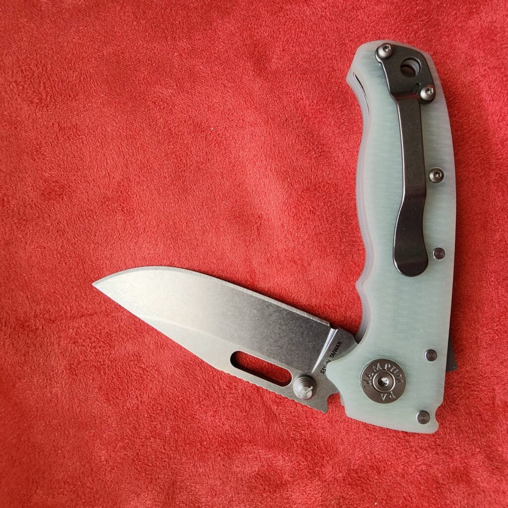 The AD20.5 by Demko Knives features the all-new Shark-Lock™. The Shark Lock mechanism is situated on the spine of the knife and operated with a ramp-like ‘fin.’ Available in Clip Point or Sharks Foot, this knife features ball bearings on the pivot pin, steel liners, Coyote Tan G10, and a left-handed pocket clip included.