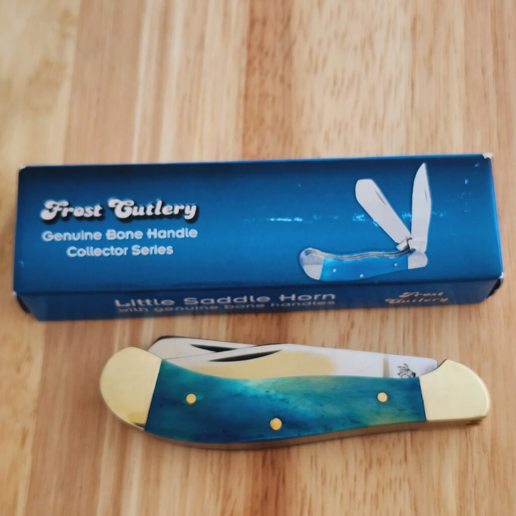 Frost Cutlery Little Saddle Horn in Smooth Blue Bone and German Stainless Steel
