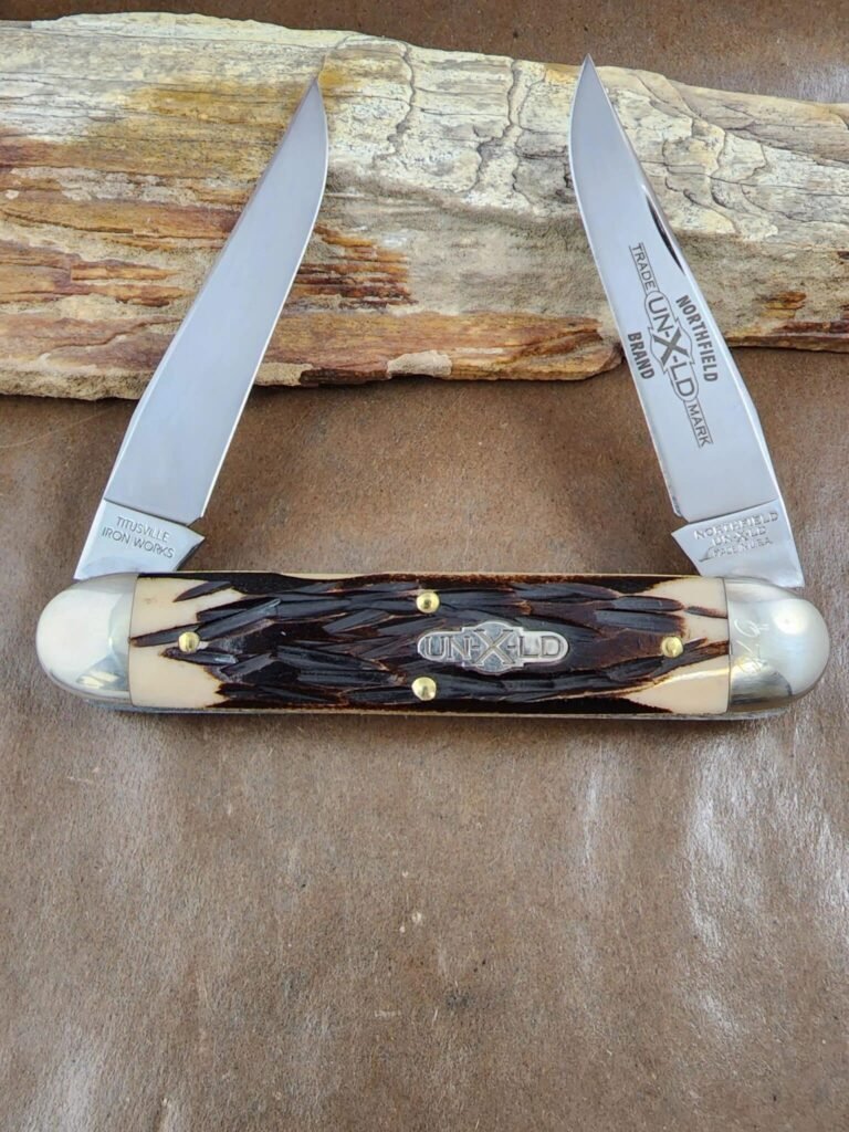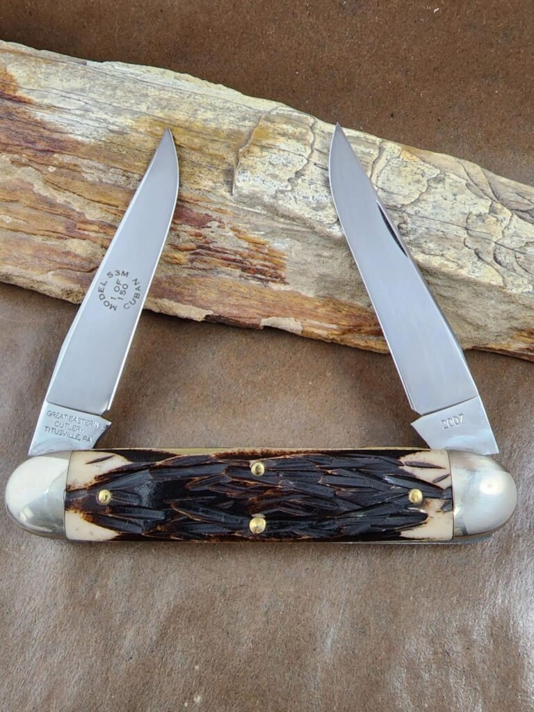 GEC # 53M Horsecut Walnut Bone 2007 SN070 (1 of 150) This knife is from 2007. On main blade is etched 1 of 150 however the production count is 128 at GEC Website. This knife has 070 on the shield side bolster. Original Tube, This Knife has never been carried or sharpened no cracks or chips. Knife pictured is the actual knife you will receive