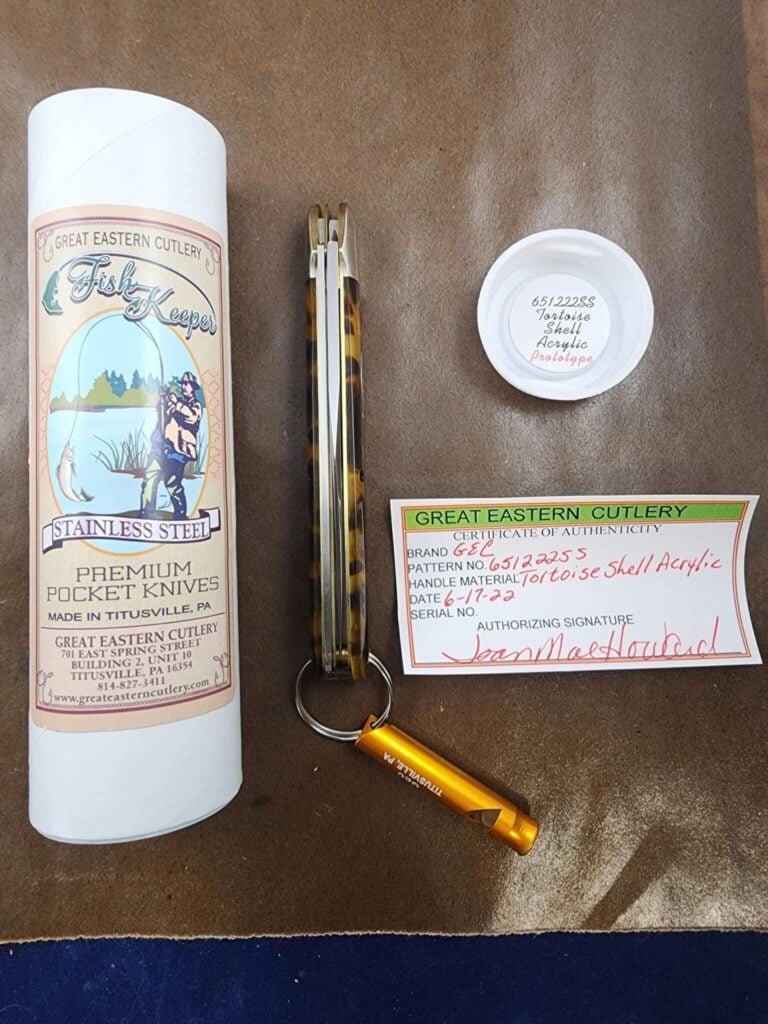 Great Eastern Cutlery #651222 SS PROTOTYPE Tortoise Shell Acrylic The knife pictured is the actual item for sale.