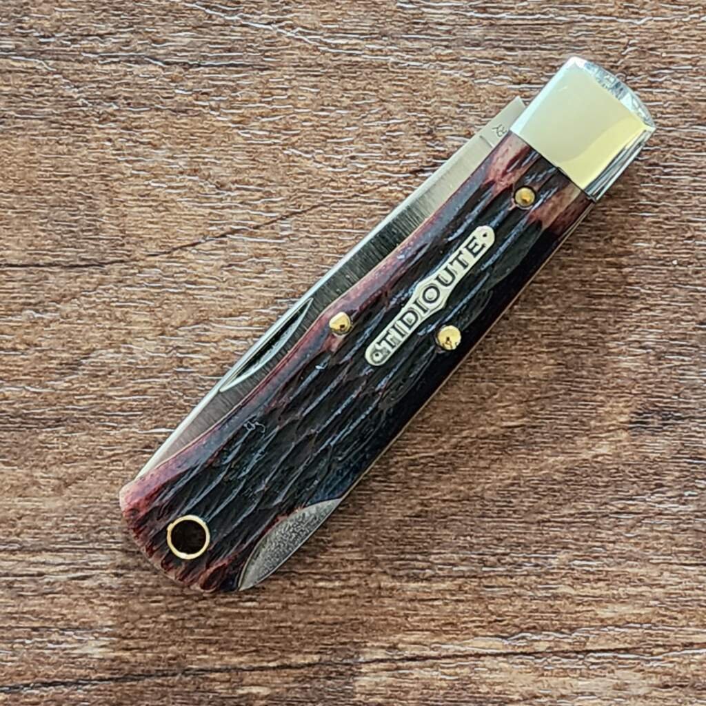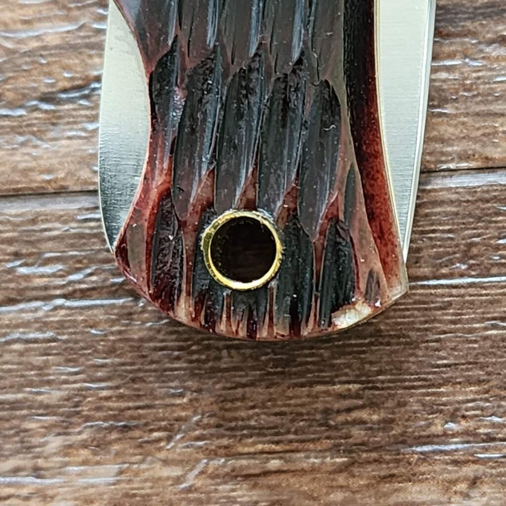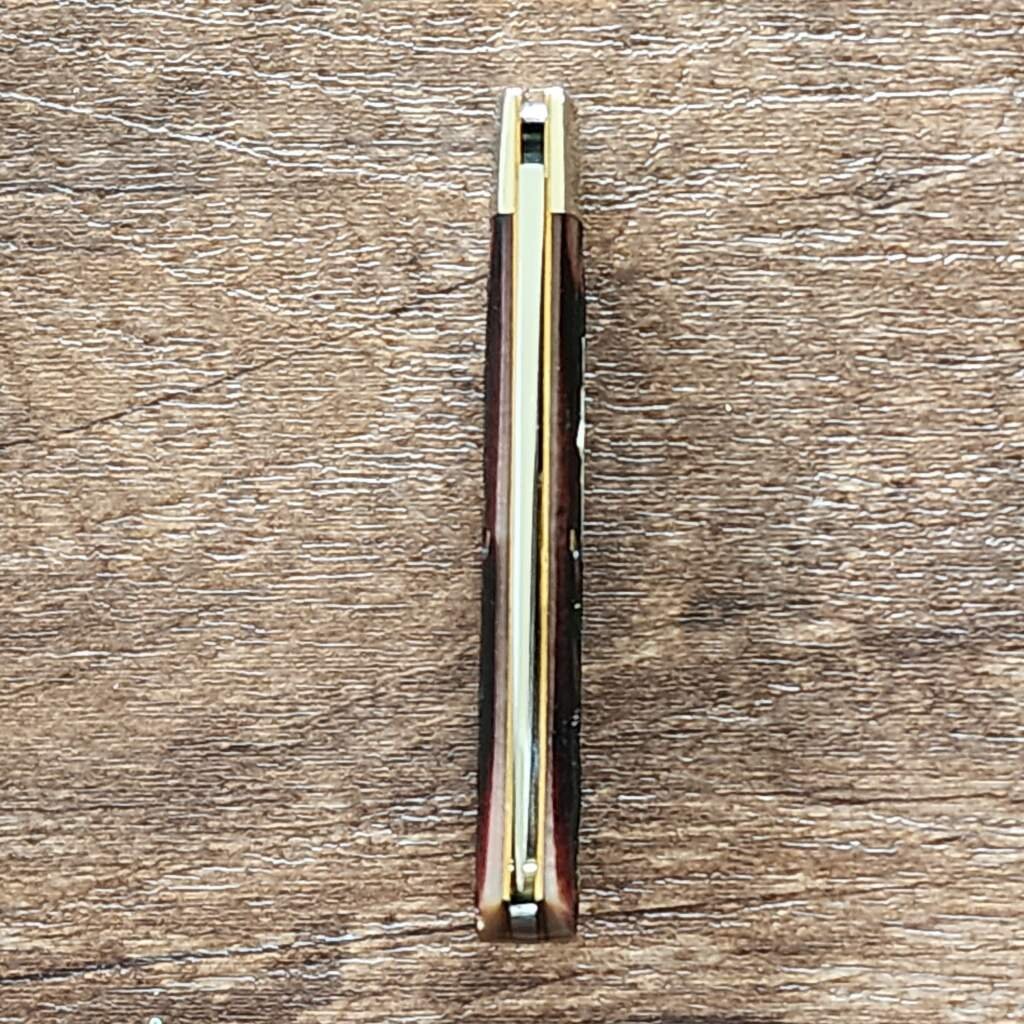 please note micro scratches on blade from wiping with cloth and chip in bone seen on closeup picture.