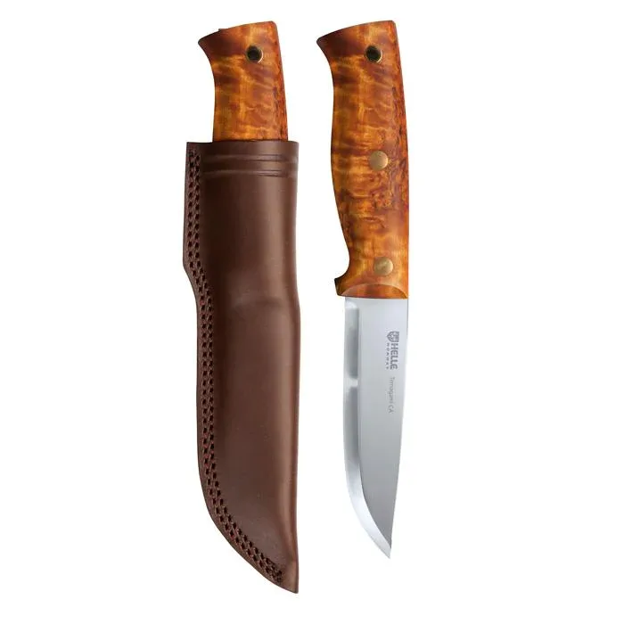 The knife is made with in two versions, where this knife is made with the Triple laminated Carbon Helle steel. Sharpened to a super sharp edge right out of the box. A carbonsteel blade offers a unique sharpness. On the other hand, it will rust on anyone not caring for the blade.
