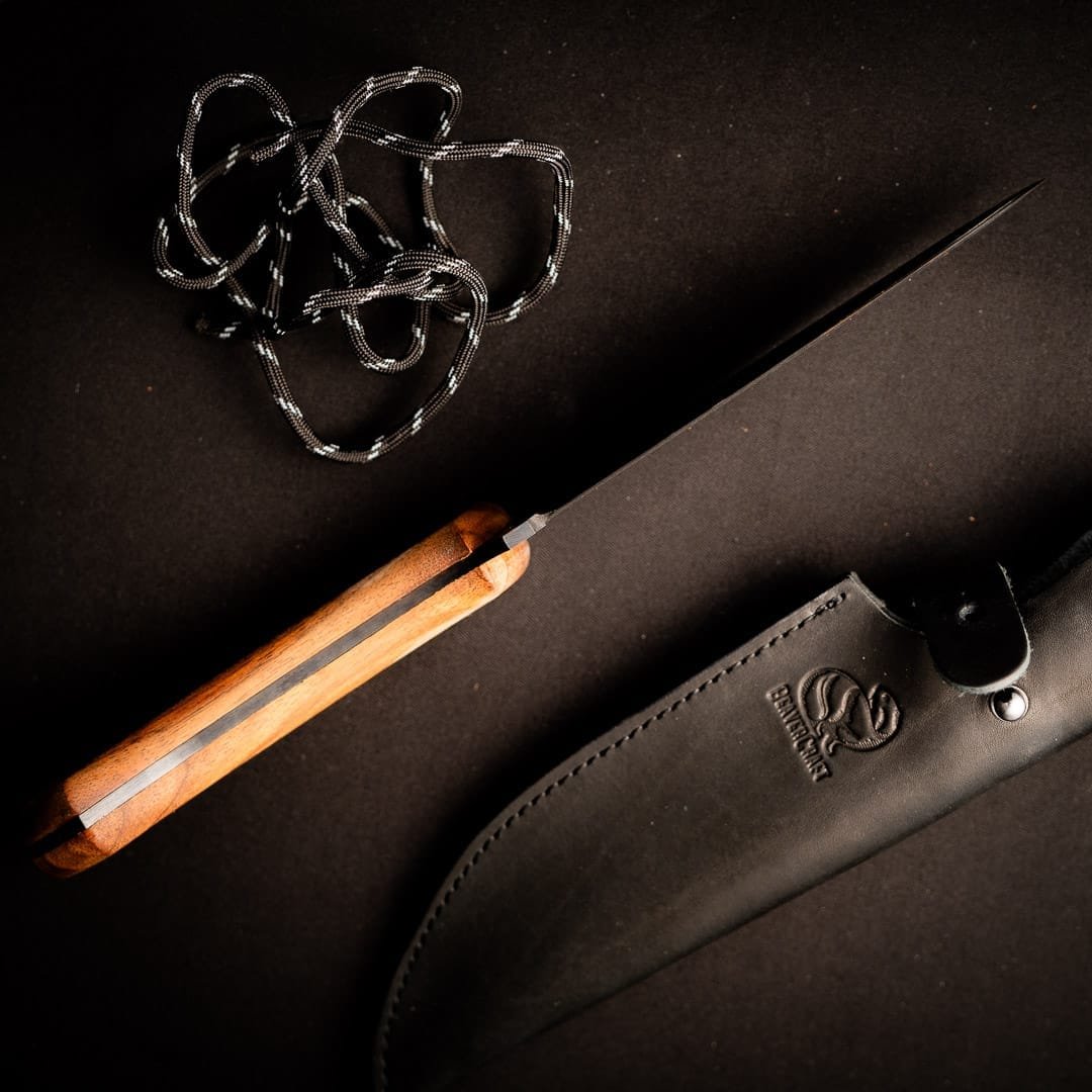 The HGK1 Hunter’s Knife is designed for hunters and outdoor enthusiasts. Featuring a robust 5.51-inch blade crafted from high-grade 1066 carbon steel, this knife is perfect for precision cutting tasks in the field. Its European walnut handle ensures a firm, comfortable grip, while the cowhide leather sheath provides convenient and secure carry.