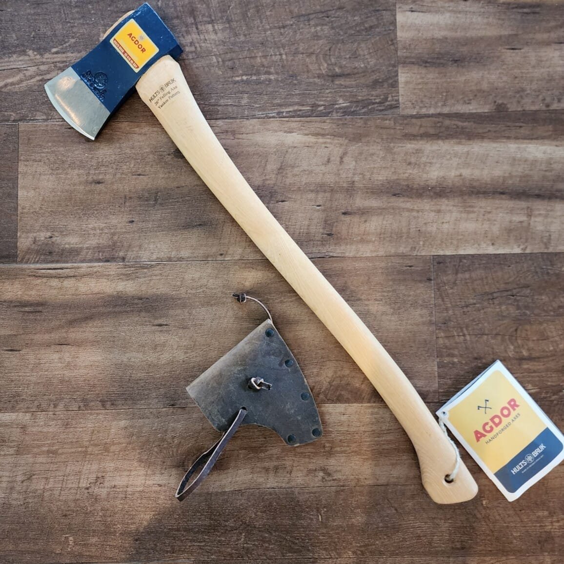Painted Agdor blue and expertly hand forged from premium Swedish steel, sharpened and ready to use out of the box. Accompanied by a leather sheath handcrafted using traditional methods. The cutting edge is approximately 3.62-inches in length. Note: all Hults Bruk axes are hand forged, so there may be slight variations from axe to axe.