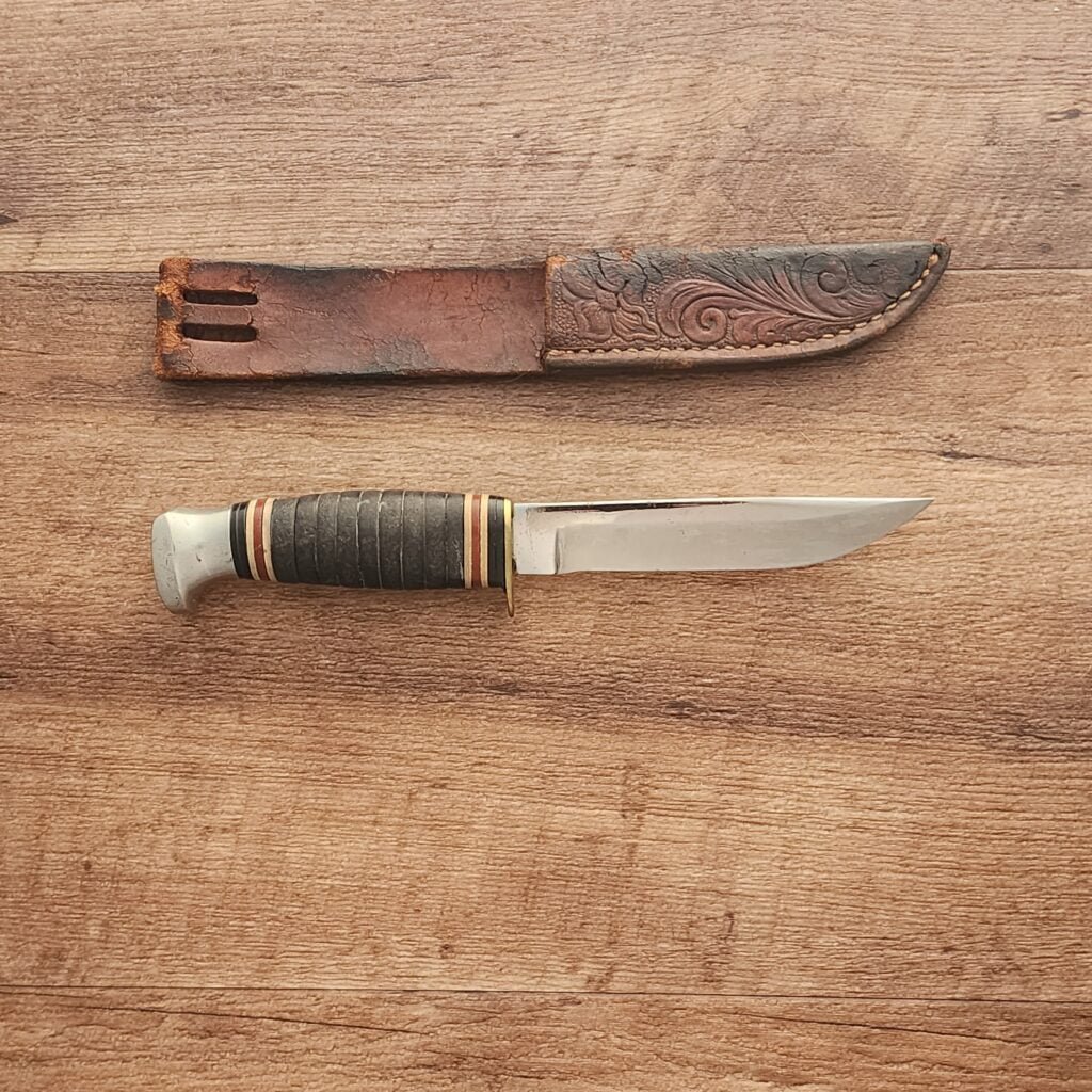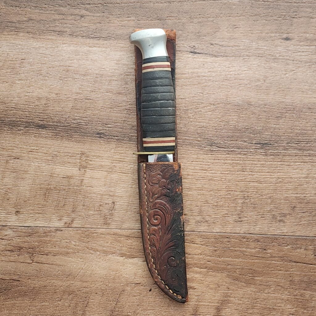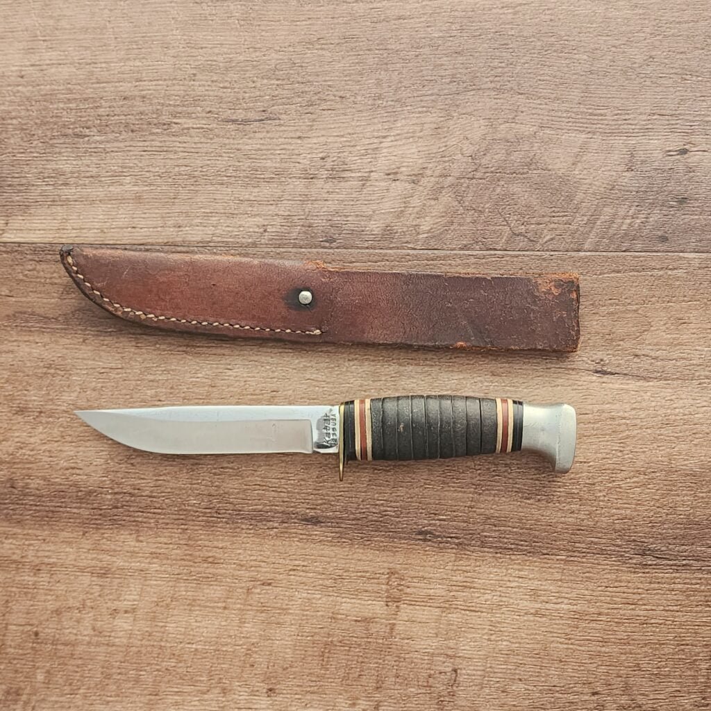 Ka-Bar Knives USA Vintage 1235 Fixed Blade Knife in Stacked Leather