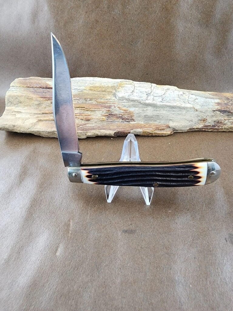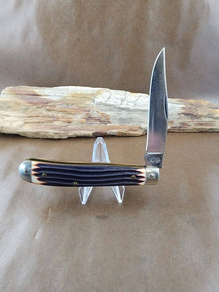Queen City 1095 Carbon Steel Nickel Silver Pins, Brass Line 2 5/8″ Blade 3.5″ Closed   Stk #Q32