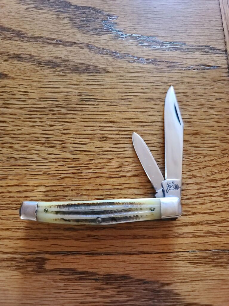 Queen Cutlery · Bolster Material: Nickle · Liner Material: Brass · OAL Closed: 3.25″ · Approximate Weight: 1.9 oz · New in Box The knife Pictured is the actual knife you will receive
