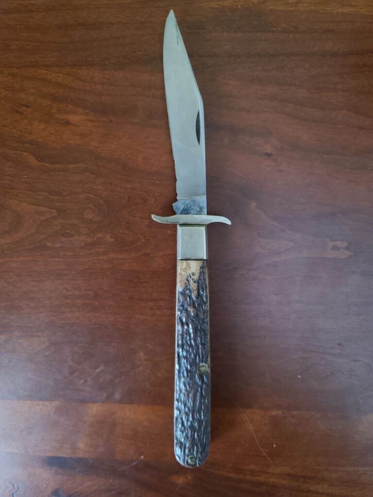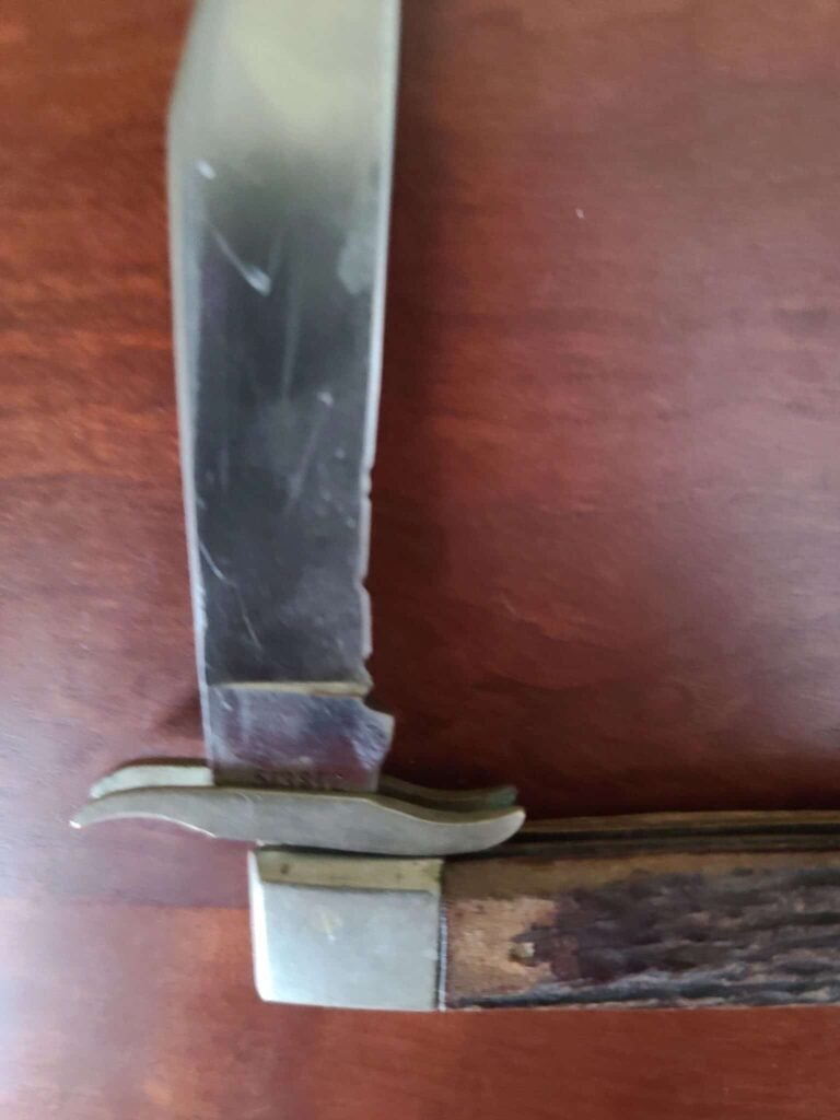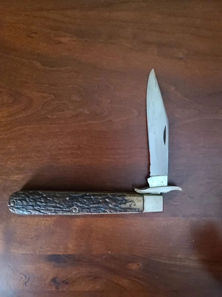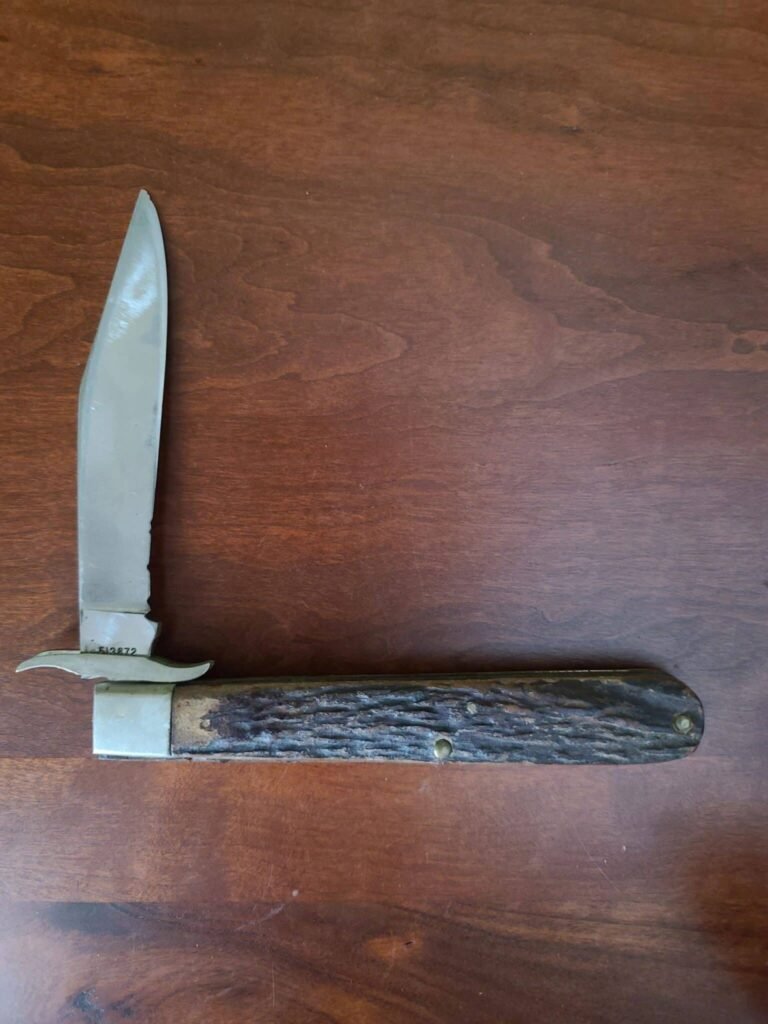 Robeson 513872 Stag RARE • Handle Material: Stag• Liner Material: Brass• Bolster Material: Nickle• OAL Closed: 4 ”• Approximate Weight: 2.6 oz•This knife is in as is condition, no box.The knife Pictured is the actual knife you will receive