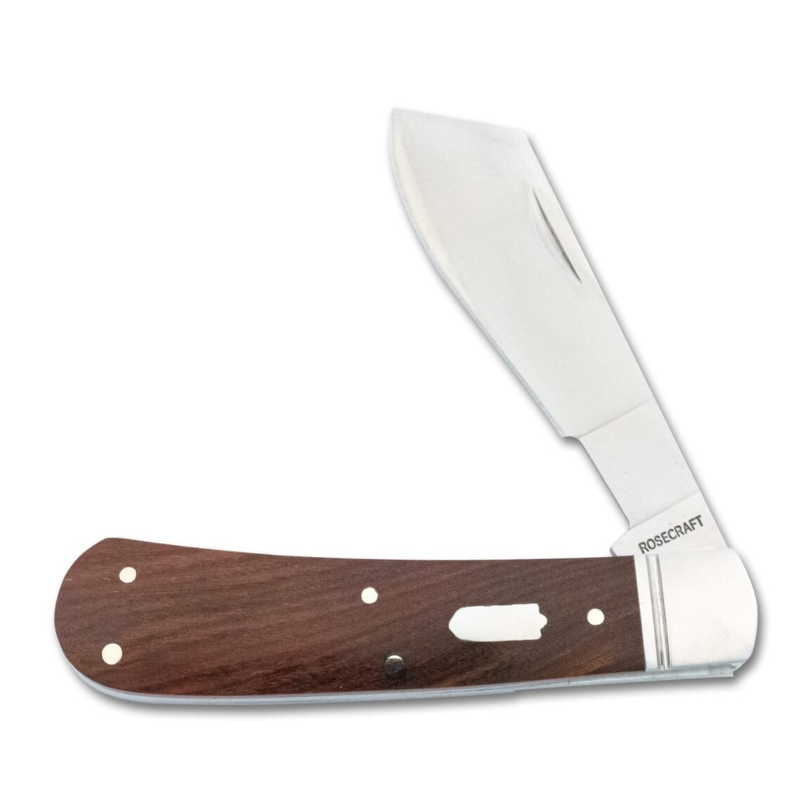 The RoseCraft Blades Mill Creek Cotton Sampler Red Sandalwood features a 3″ D2 cotton sampler blade with a brushed satin finish. It’s 2.7mm thick with heavy swedging and a half stop. This one-bladed traditional slip joint is the first RoseCraft traditional to feature the new “Rose Bomb” shield. It has brushed steel bolsters, steel liners, and nickel silver pins. The covers are genuine Red Sandalwood. It’s 3.9″ closed, 6.9″ overall, and weighs 3oz. Inspired by traditional cotton sampler patterns and re-imagined by Andy Armstrong.