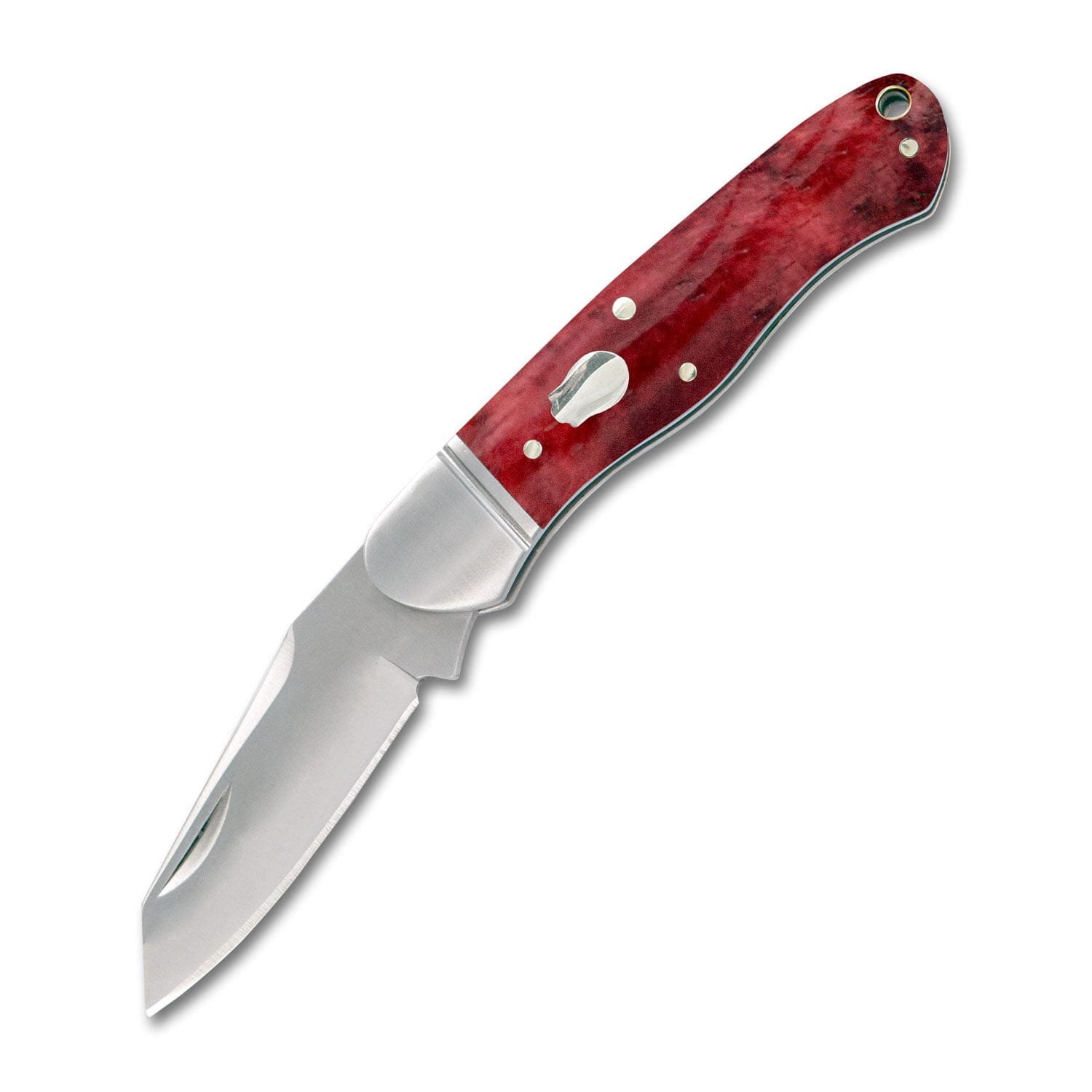 2.33″ D2 K-Clip Blade. Brushed satin finish. 2.7mm thick. Half stop. Slip joint. Brushed steel bolsters. Steel liners. Steel RoseBud shield. Genuine Red Apple Bone covers. 3.625″ closed. 5.9″ open. Weighs 2.9oz. Designed by Andy Armstrong