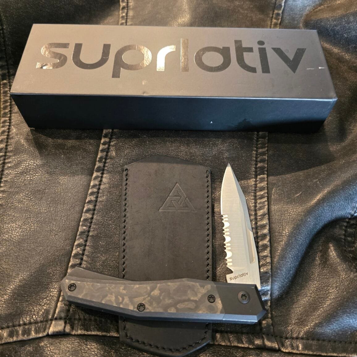 Suprlativ Infidel in Titanium Black PVD/ Black Camo Fat Carbon and M4/ Serrated Belt Satin