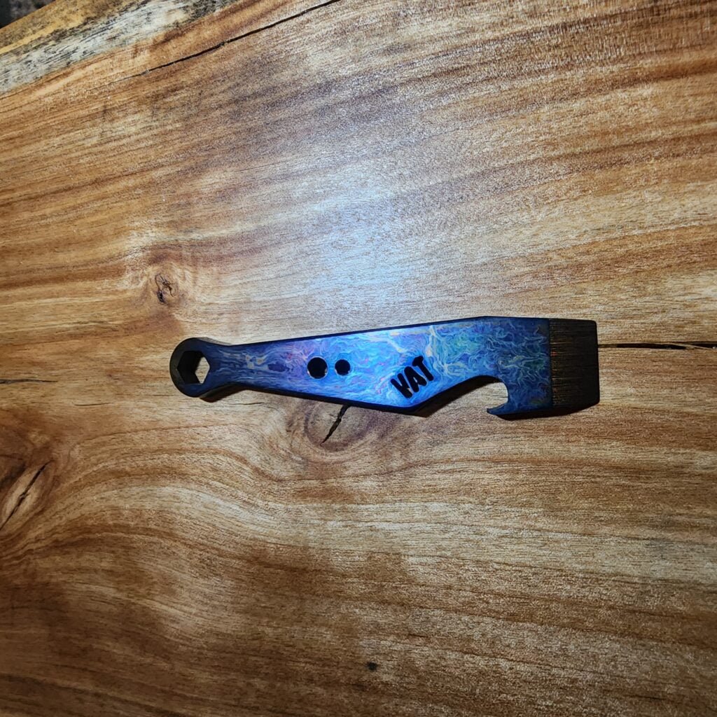 This miniature pry bar has been individually heat treated by hand for a unique one-of-a-kind appearance.