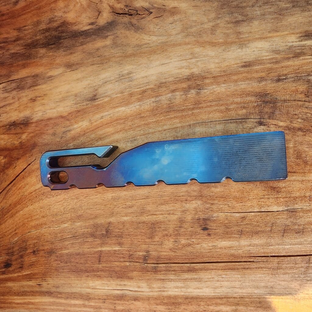 This miniature pry bar has been individually heat treated by hand for a unique one-of-a-kind appearance.