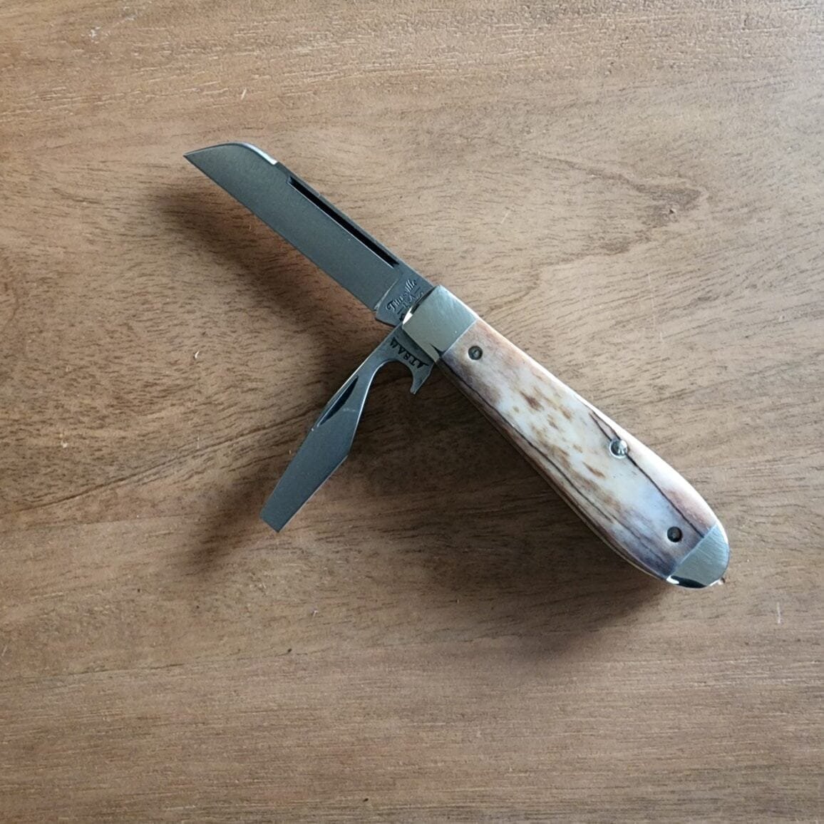 Details about TSA Knives Exclusive Old Man Jack Caplifter w/ Sheepsfoot Brown Sugar Giraffe Bone (1 of 3) by Daniels 07/2024