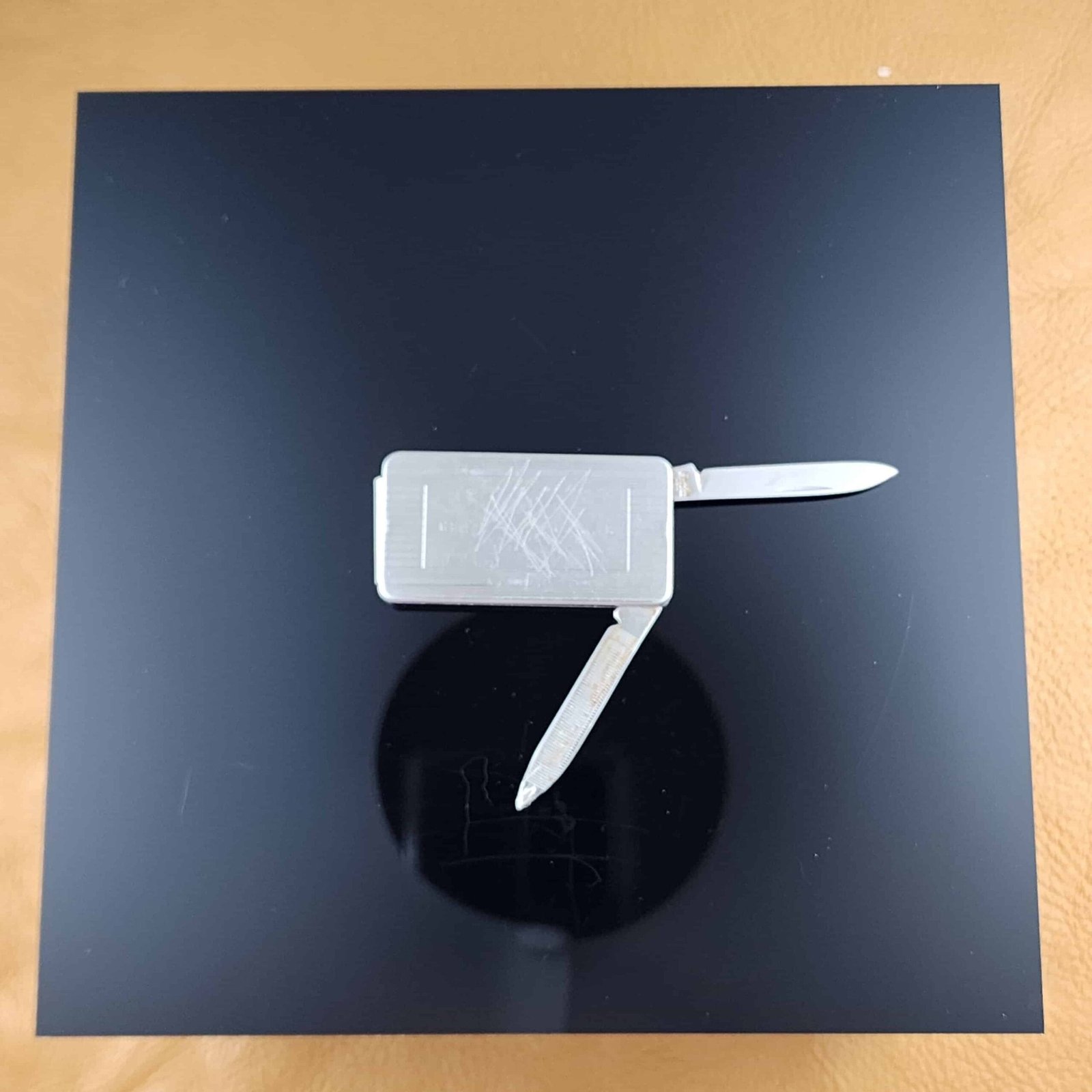 Vintage Stainless Steel GE advertising money clip with knife, file, and scissors (Used)