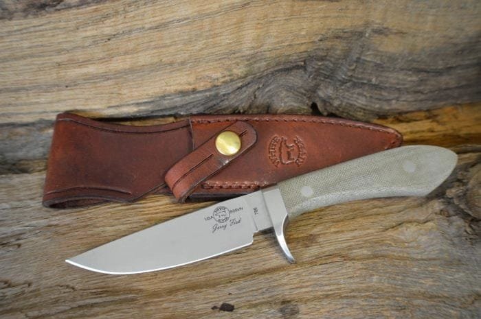 Designed by Jerry Fisk, MS Modeled after Jerry’s most popular knife design, the Sendero. This all-purpose knife comes with a tough Micarta handle on its ultra-strong full-length hidden tang. The Sendero Classic™ blade features a curved edge from tip to tight-fitting hilt. The stonewashed, leather-stropped, 0.13″ thick, curved profile blade cuts with an almost friction-free feel. The Sendero Classic™ is one of White River’s finest knives. OAL 9.15″ Balde 4.4″ .130″ Thick CPM S35VN Hardness 58-60 HRC Weight Approx 4.4 oz Leather Sheath